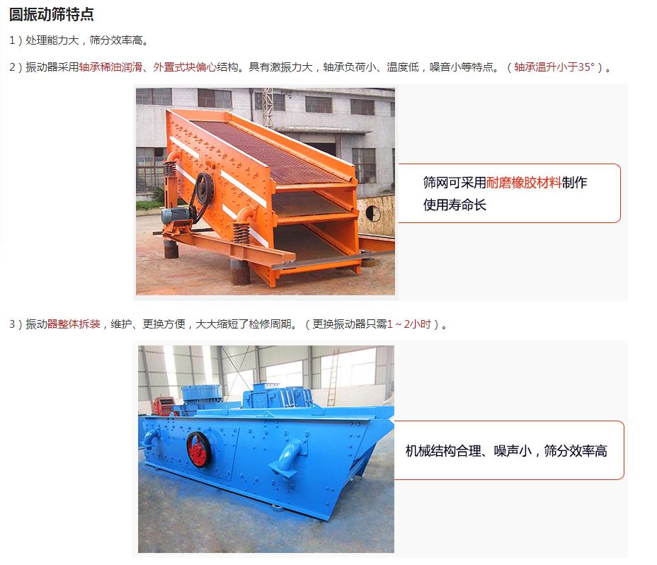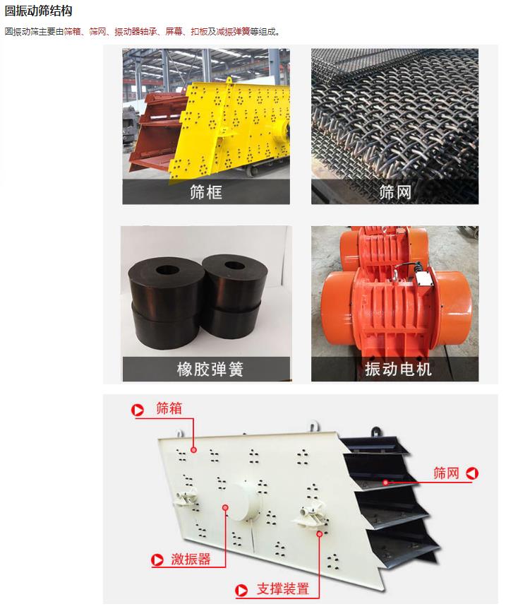 1、圓振動篩篩機分單層和雙層,并有輕型和重型之分。