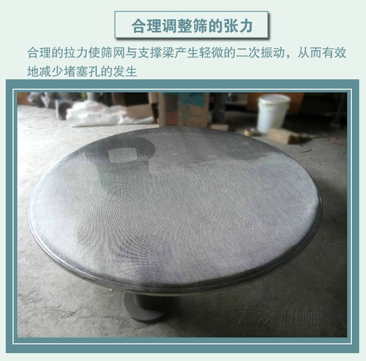 合理調(diào)整篩網(wǎng)拉力是減少篩網(wǎng)堵塞的有效方法。合理的拉力使篩網(wǎng)與支撐梁產(chǎn)生輕微的二次振動,從而有效地減少堵塞孔的發(fā)生。具體方法是使張力鉤成為恒力張力機構(gòu),即在張力螺栓上安裝彈簧。
