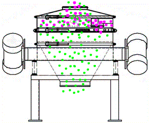 (2-1)三次元旋振篩工作原理:該系列篩機是利用立式振動電機作為振動源,上下端所安裝的重錘(不平衡重錘),將電機的運動轉變為水平、垂直、傾斜的三維運動,再把這個運動傳遞給網面.改變電機上下重錘的相位角可以改變原料的運動方向;