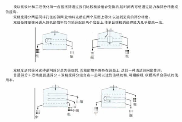 搖擺篩它采用仿生人工篩分的原理,將手工篩分動作的”-(平面圓周運動)”-(向上拋物料)這兩種運動形式好的結合在一起,解決精細與超精細范圍的粉末與顆粒物料的篩分難題。