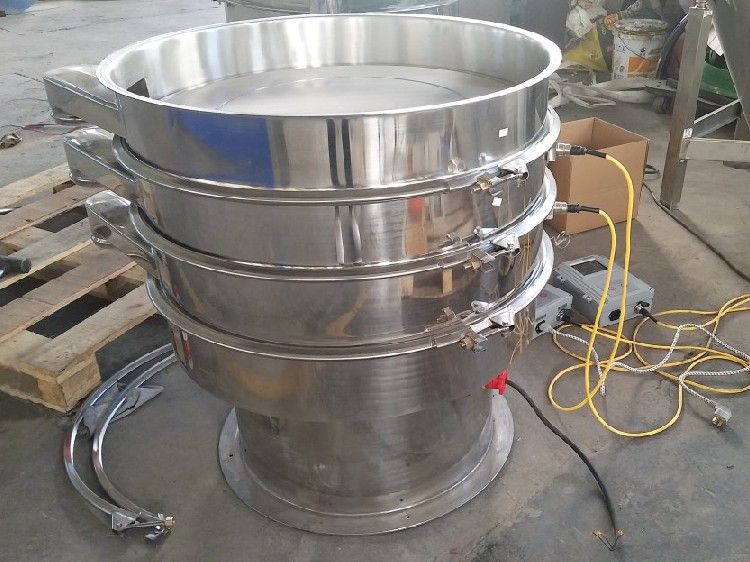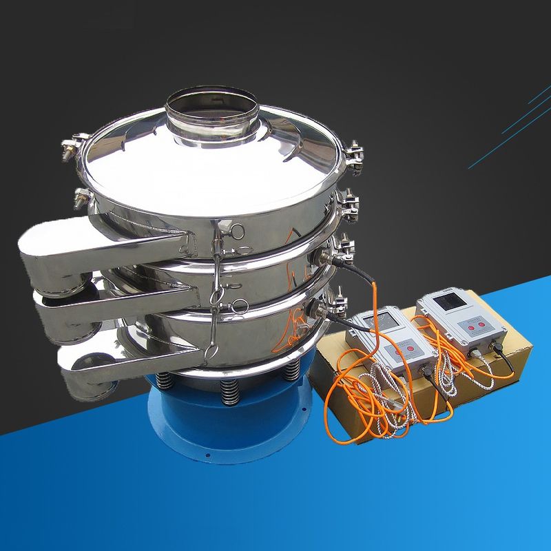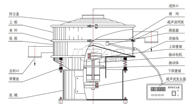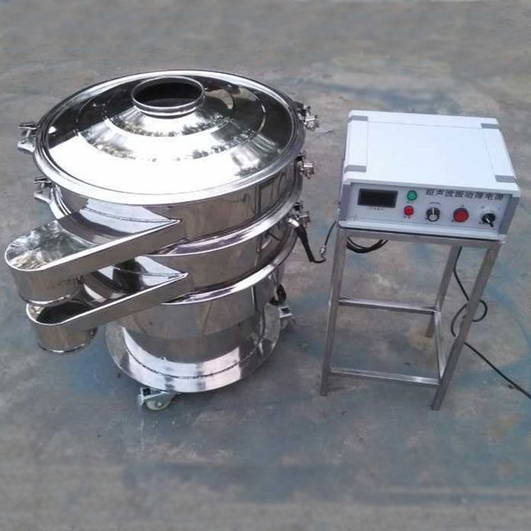 超聲波振動篩是將220V、50Hz或110V、60Hz電能轉化為36KHz的高頻電能,輸入超聲換能器,將其變成36KHz機械振動,產生的功率超聲波使篩網作高頻振動。篩網上的物料在作低頻旋振運動的同時,疊加上超聲振動,既可防止網孔堵塞,又可使篩分機提高產量和質量,從而達到快速篩分和清網的目的,使超微細粉篩分成為易事。該系統在傳統的振動篩基礎上在篩網上引入一個低振幅、高頻率的超聲振動波(機械波),以改變超微細分體的篩分性能。特別適合高附加值精細分體的用戶使用。