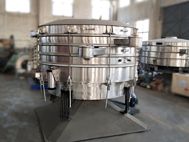 搖擺篩是一種仿人工搖動的低頻旋振篩,其原理是:瞬時運動為沿徑向的位移和以此位移為軸的圓周運動的合成(螺旋運動),即可調節偏心距的激振器產生了非線性三維運動,物料也產生同樣的近似手動作業的運動,從而達到篩分之目的,再配合篩分附件可獲得更加理想的篩分效果,適合于圓形狀、圓柱狀、片狀、乃至 于規則形狀易堵網且需要精細篩分的物料,是為了滿足大產量、高密度篩分用戶而設計的一種篩分設備,與一般圓形篩相比,它的篩分精度、效率、產量、篩網壽命能提高5-10倍,符合所有精細與超細范圍的粉末與微粒狀物料,特別適合難以處理的物料。還可單層或多層篩分,一次可篩分至6個粒度。搖擺篩適合精細和超細范圍的粉末和微粒狀物料,產量大、精度高