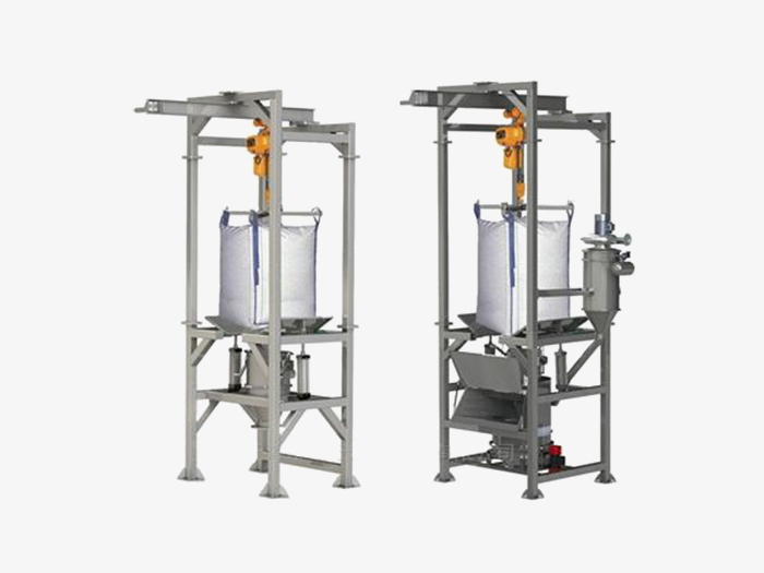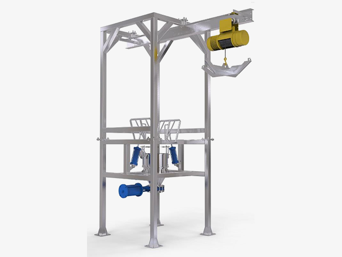 起重設(shè)備:自身攜的帶起重設(shè)備將大袋(噸袋)吊裝到卸料機的機架上,不需用外界的幫助。
