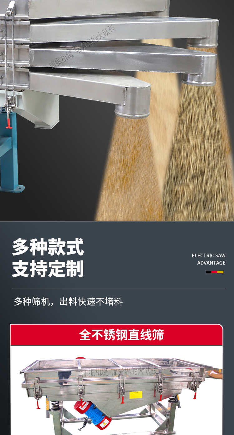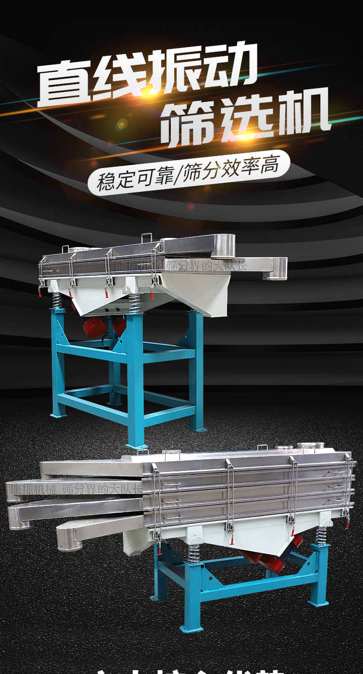 直線振動篩(直線篩)穩定可靠、消耗少、噪音低、壽命長、振型穩、篩分效率高等優點。